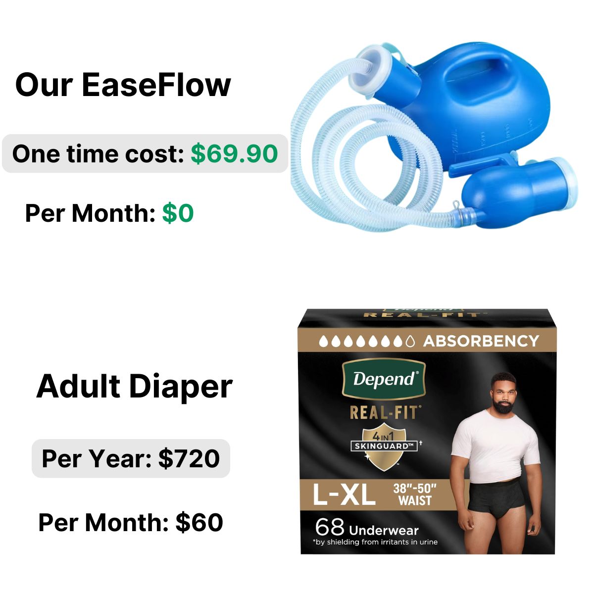 Absolutely. Diapers can cost over $700 a year and can be uncomfortable. Easeflow is a one-time buy that saves money, prevents rashes, and feels more dignified.